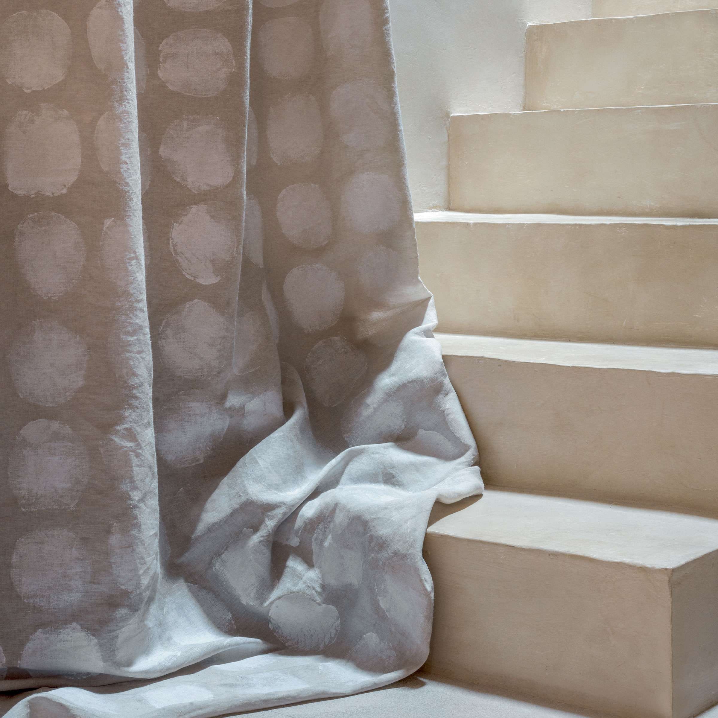 Parfaitement adapté à la confection de rideaux et de voilages, le tissu Full Moon habille les fenêtres avec subtilité, entre modernité graphique et inspiration naturelle.